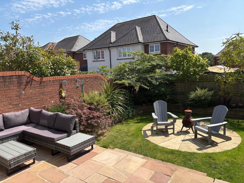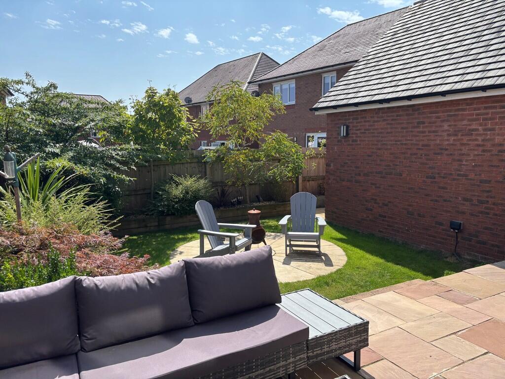 A delightful southerly facing rear garden enclosed by brick wall and timber fencing with timber side gate leading to driveway. The garden is beautifully landscaped and of low maintenance with paved patio leading onto an area of decorative stones and central circular paved patio, raised beds of plants and shrubs, outside power point.