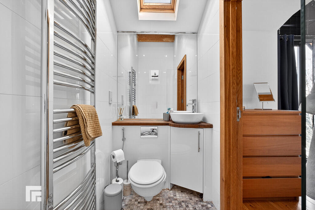 DOWNSTAIRSWC6' 10" x 3' 11" (2.1m x 1.2m) Small obscured window to front. Spotlights to ceiling. Surface mounted wash hand basin and low level wc. Heated towel rail.