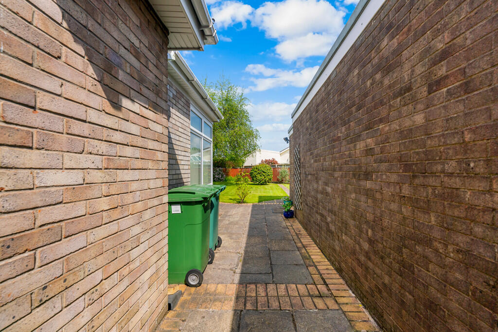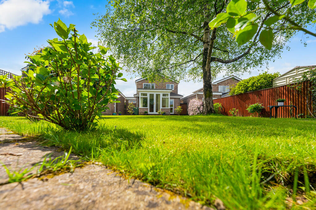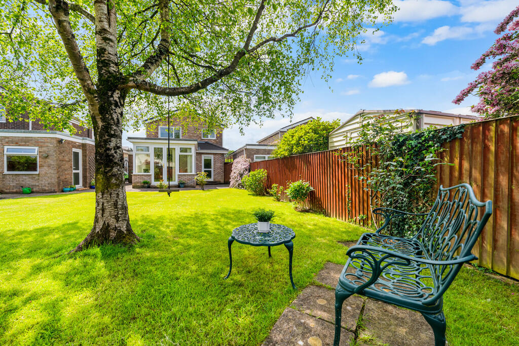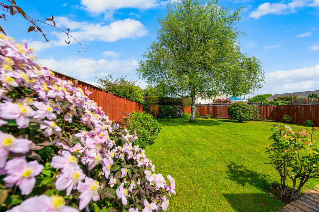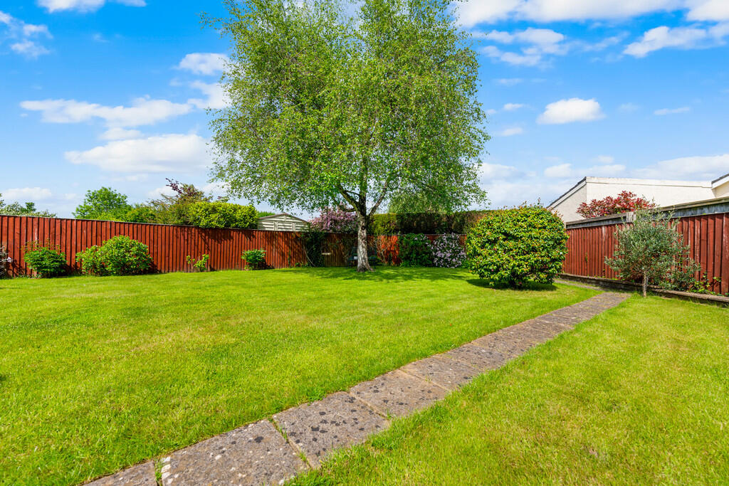 OUTSIDEREARGARDEN A beautifully maintained rear garden with well manicured lawn with neat inset beds of plants and shrubs, paved patio, enclosed by timber fencing. Door to utility/storage. Outside tap. Additional timber storage to one side, gate to driveway.