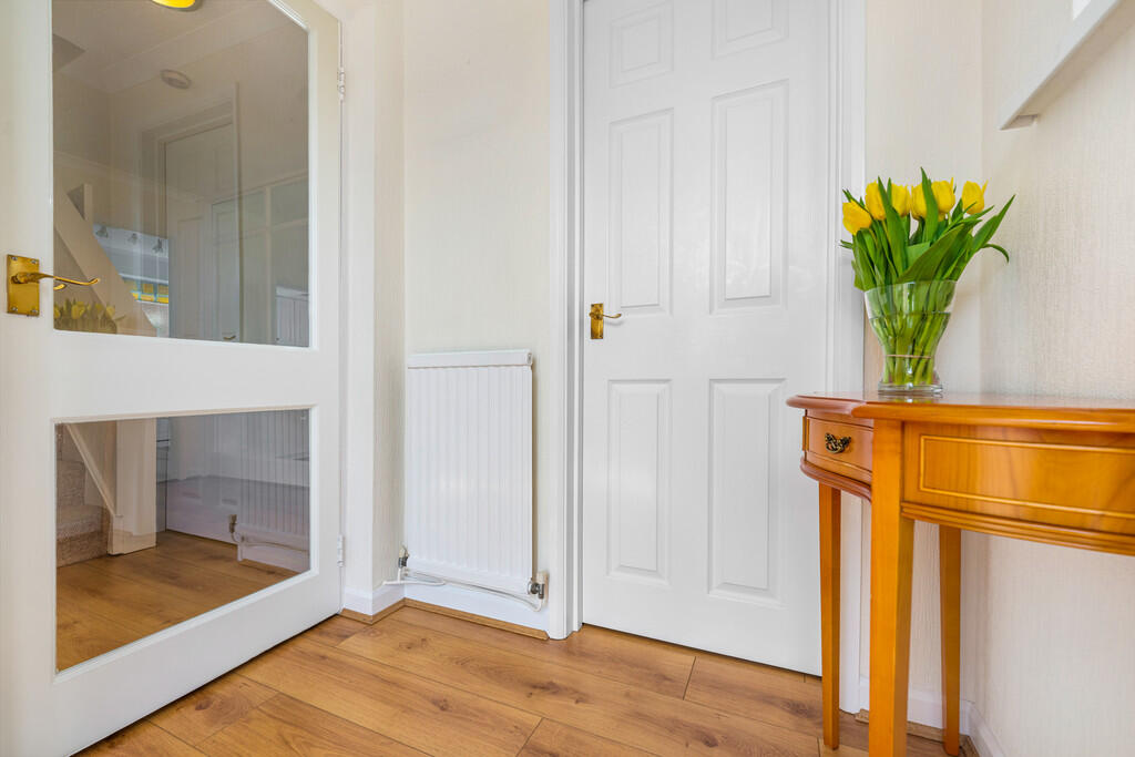 ENTRANCEPORCHWAY Approached via a uPVC entrance door with obscure glass window to upper part. Window to side. Quality laminate flooring. Radiator. Door to hallway and door to cloakroom.