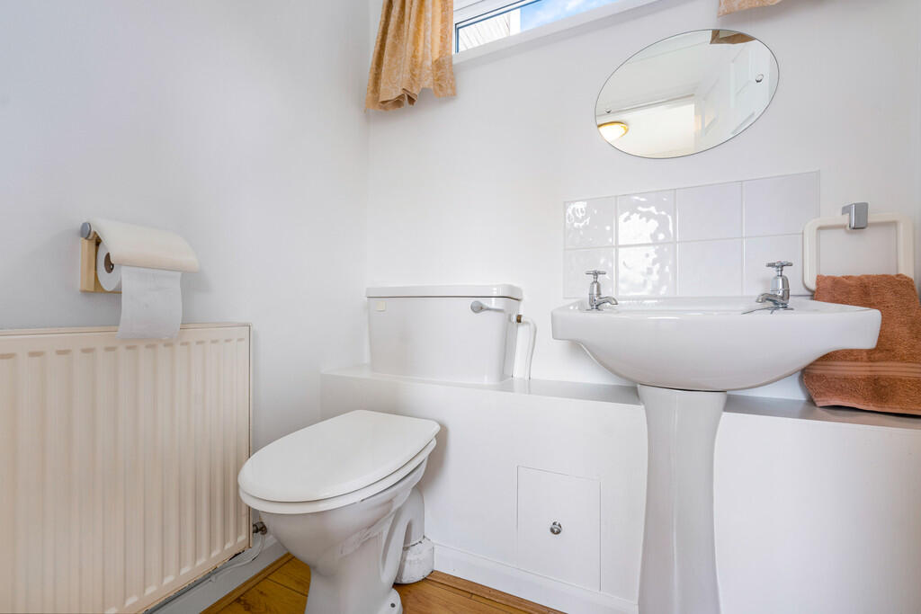 CLOAKROOM White suite comprising low level WC, wash hand basin. Quality laminate flooring. Window to rear aspect. Radiator.