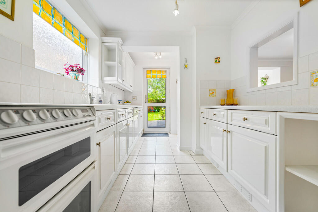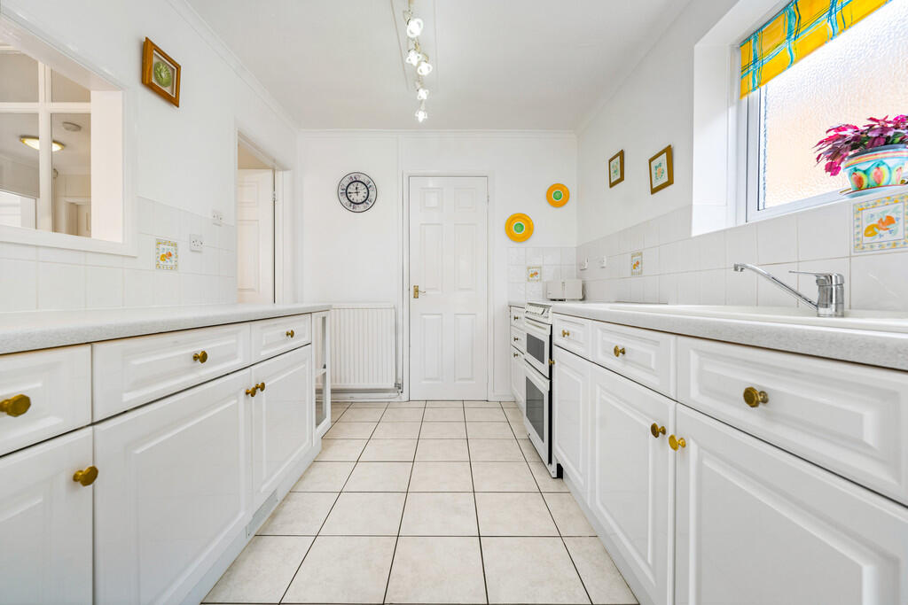 KITCHEN15' 1" x 7' 11" (4.60m x 2.43m) Well appointed along two sides in high gloss panelled fronts beneath round nosed worktop surfaces, inset 1.5 bowl sink with side drainer, integrated dishwasher, slot in cooker to remain, matching range of eye level wall cupboards, integrated fridge, integrated freezer, upvc door to rear, obscure glass window to side, tiled flooring, serving hatch to dining room, wall tiling to splash back areas and radiator. Door to utility cupboard.
