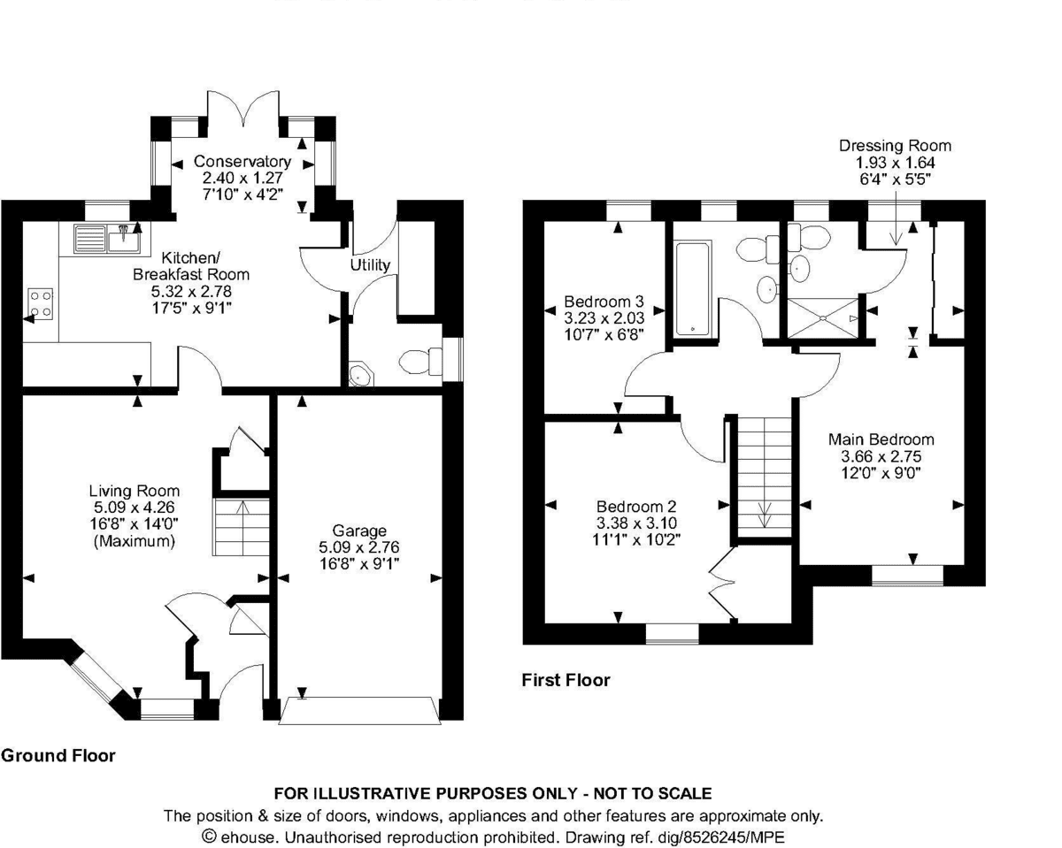 BEDROOMONE12' 0" x 9' 1" (3.66m x 2.77m) uPVC double glazed window to front. Radiator. Opening to dressing room.