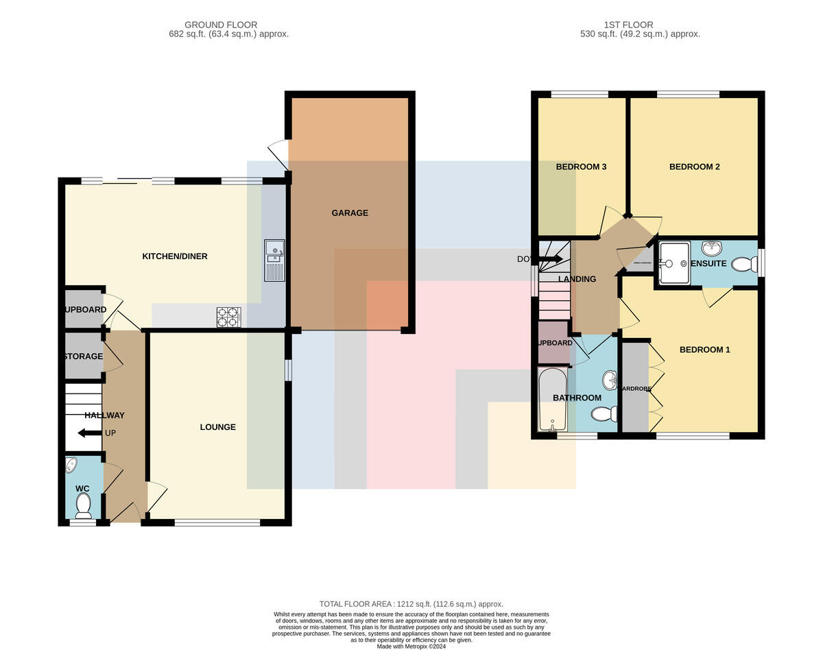 FAMILYBATHROOM8' 2" x 6' 11" (2.49m x 2.12m) Modern white suite comprising low level W.C, wash hand basin, panelled bath with chrome shower above, swivel shower screen, wall tiling to splash back areas, tiled flooring, window to front, electric shaver point, storage cupboard and chrome heated towel rail.
