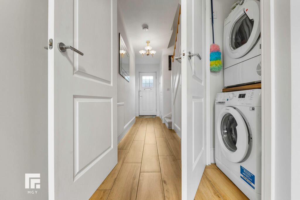 ENTRANCEHALLWAY Approached via a composite entrance front door leading to the spacious hallway, staircase to first floor, under stairs storage cupboard, quality woodgrain effect tiled flooring and radiator.