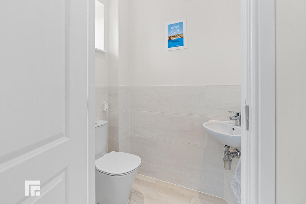 CLOAKROOM5' 5" x 3' 1" (1.67m x 0.96m) Modern low level WC and wash hand basin. uPVC double glazed window to front. LVT flooring. Radiator. Spotlights.