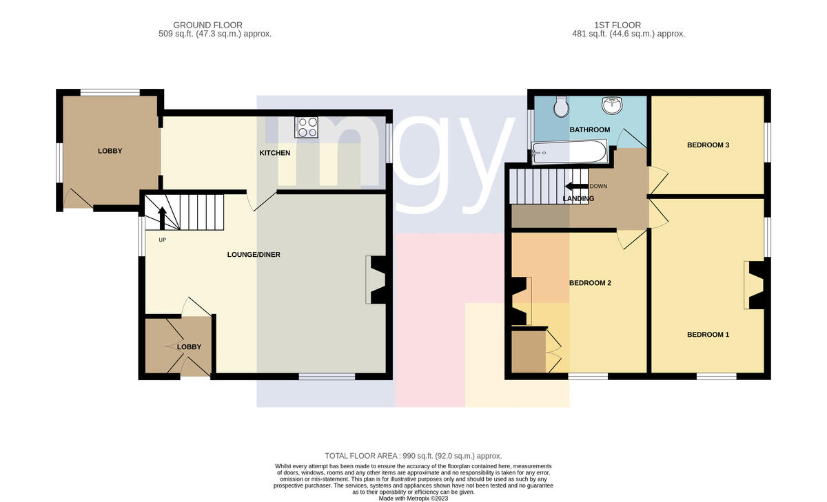 BEDROOMONE15' 1" x 8' 5" (4.61m x 2.58m) With windows to front and side, a good sized principal bedroom, access to roof space. Radiator.
