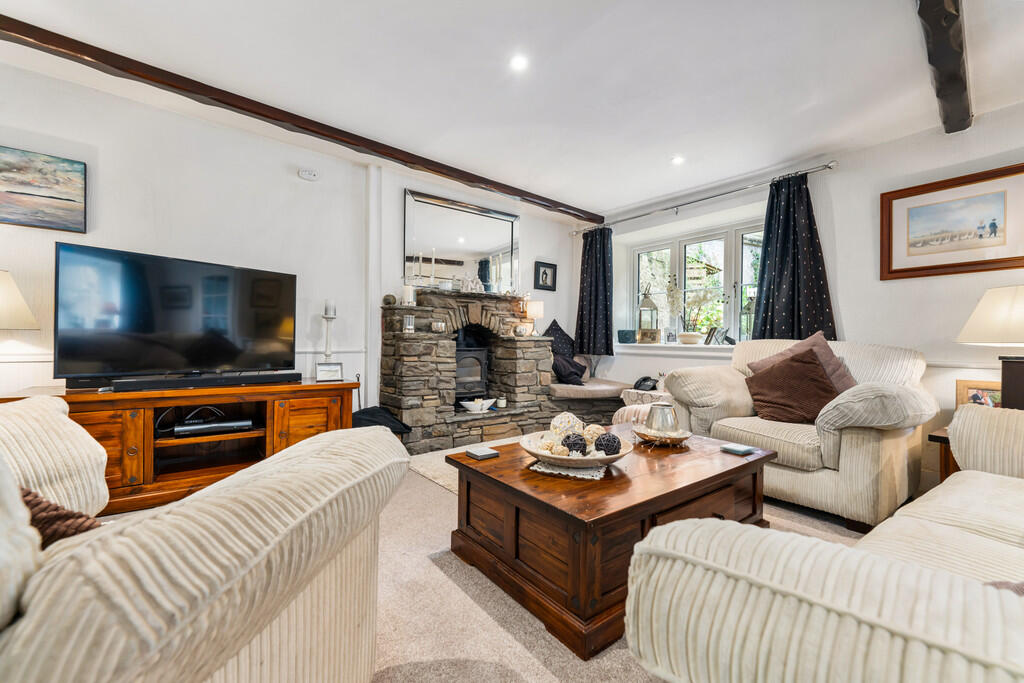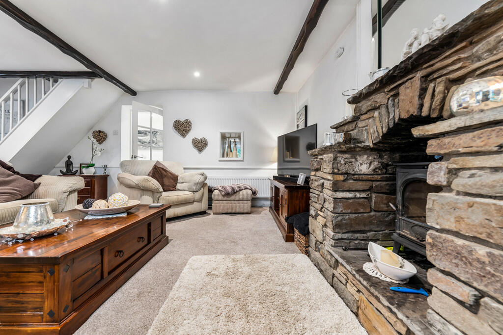 LOUNGE20' 4" x 15' 3" (6.22m x 4.65m) A good sized reception with windows to front and side, stone built fireplace with cast iron wood burner. Staircase to first floor. Radiator. Door to kitchen.