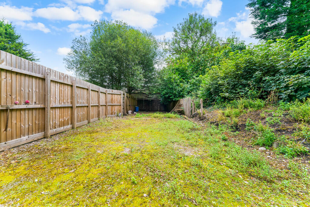 REARGARDEN Continuation of driveway from the front, leading to a long rear garden. Currently open plan with the pub garden.