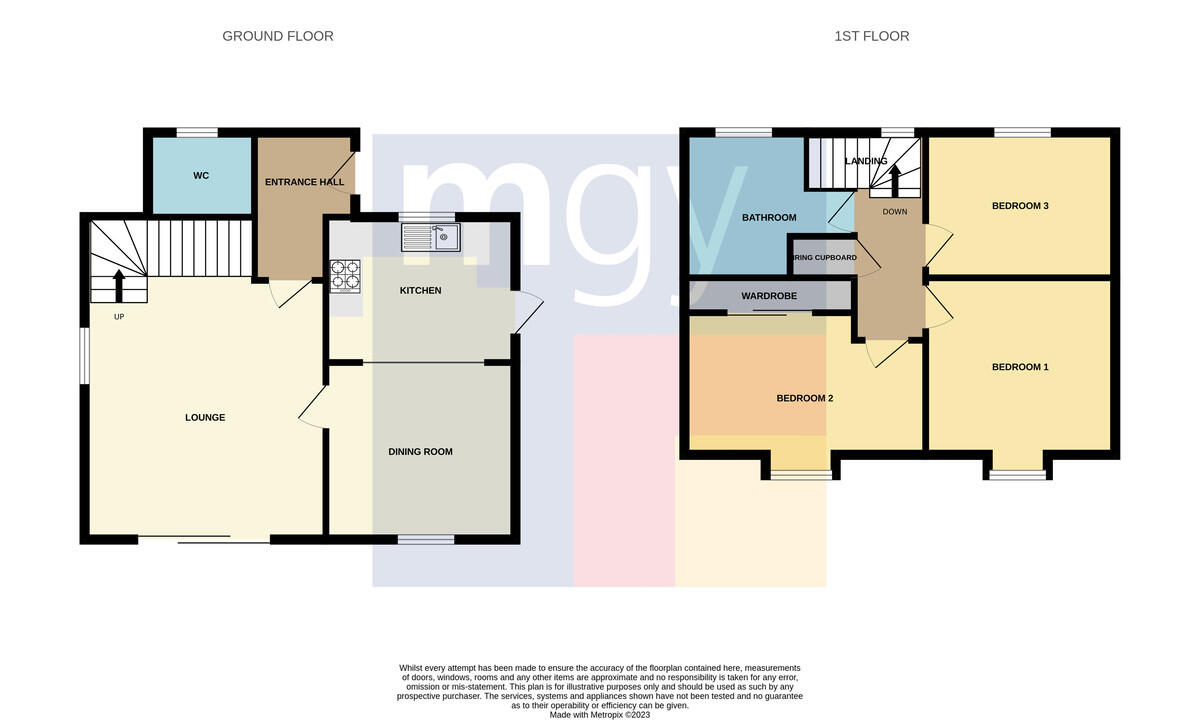 LANDING Wall papered walls with textured ceilings, a central light pendant finished with carpeted flooring. Upvc double glazed window to front. Doors leading to all first floor rooms. Single storage cupboard housing water tank. Upvc double glazed window to side.