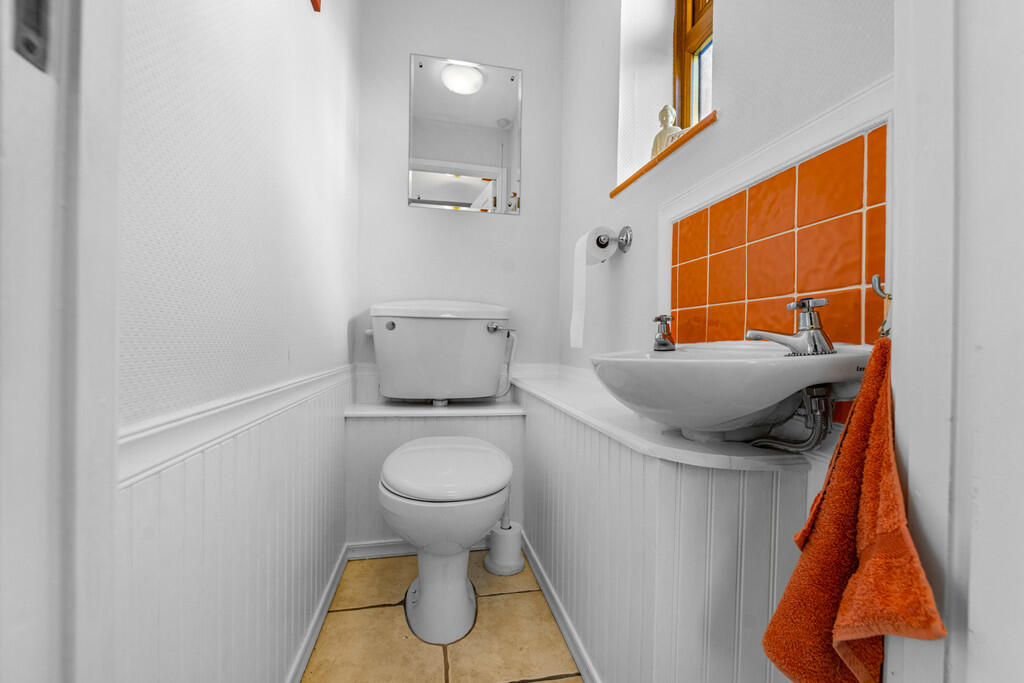 CLOAKROOM Fitted with a two piece bathroom suite comprising WC and wash hand basin. UPVC double glazed obscure window to side.