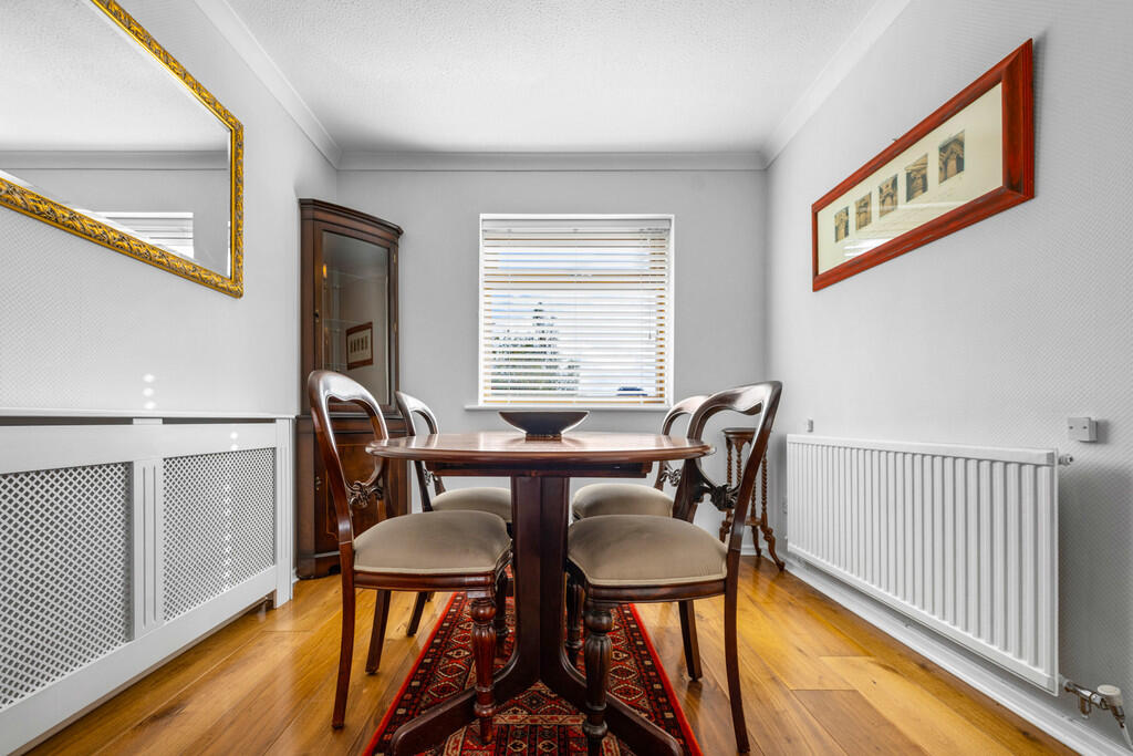 DININGROOM8' 5" x 9' 7" (2.57m x 2.92m) Wall papered walls with textured ceiling, a central light pendnat and engineered wood flooring to finish. Archway leading to kitchen. Upvc double glazed window to rear.