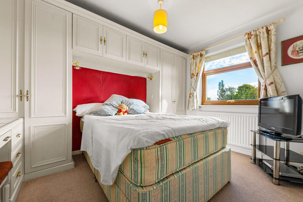 BEDROOMONE8' 4" x 10' 10" (2.55m x 3.31m) Wall papered walls with textured ceiling, a central light pendant finished with carpeted flooring. Upvc double glazed window to rear. Built in double wardrobes surround bedroom frame.