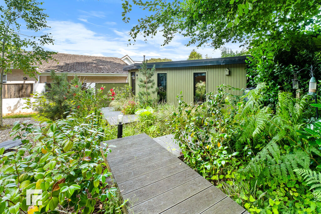 ** BEAUTIFULLY PRESENTED THREE DOUBLE BEDROOM DETACHED BUNGALOW ** EXCEPTIONAL FINISH THROUGHOUT ** GARDEN ROOM ** An exceptionally beautifully presented three bedroom detached bungalow of high quality finish throughout in the sought after area of Radyr. Entrance hallway with large storage cupboard, modern cloakroom, study, large lounge with vaulted ceiling, feature fireplace and patio doors to the front garden, modern fitted kitchen and breakfast room with integrated appliance and patio doors to the side garden, utility room. Inner hallway with access to three double bedrooms, primary bedroom with ensuite shower room and there is a separate family bathroom. Gas central heating. Double glazing. Beautifully landscaped gardens to front, side and rear. Large garden room. EPC Rating: