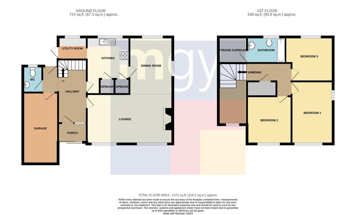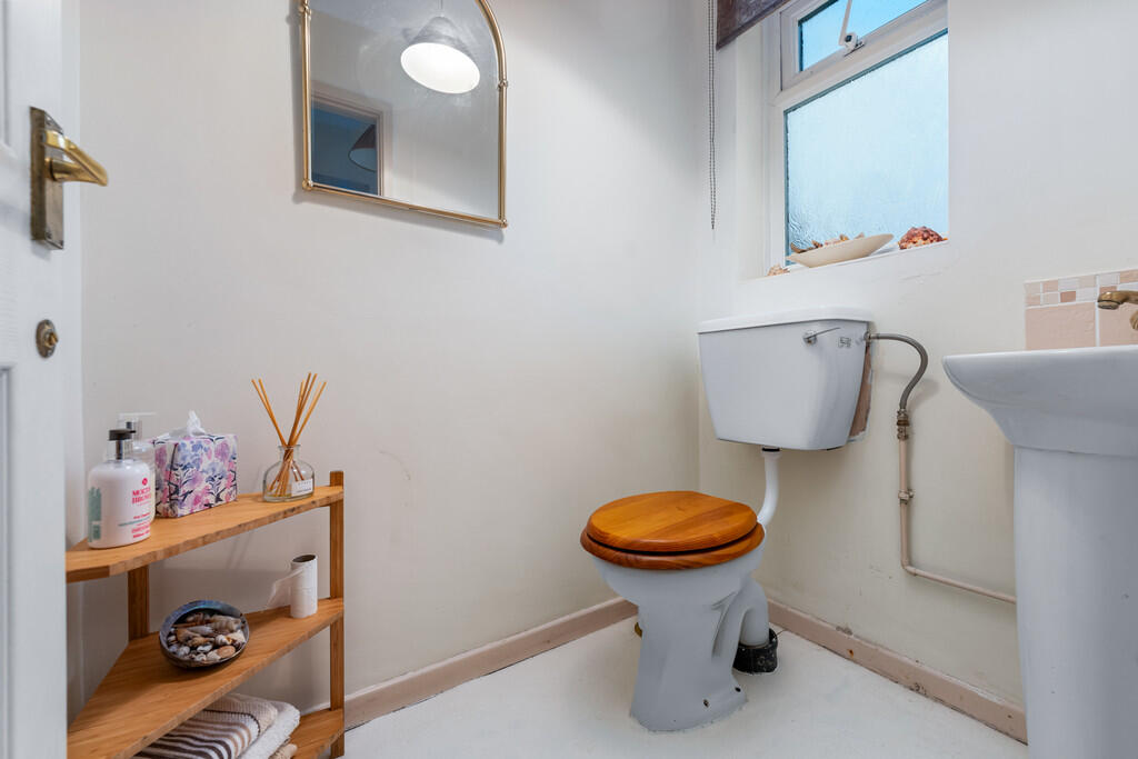 CLOAKROOM5' 3" x 3' 10" (1.62m x 1.18m) Low level WC and pedestal wash hand basin. uPVC double glazed obscure window to rear.