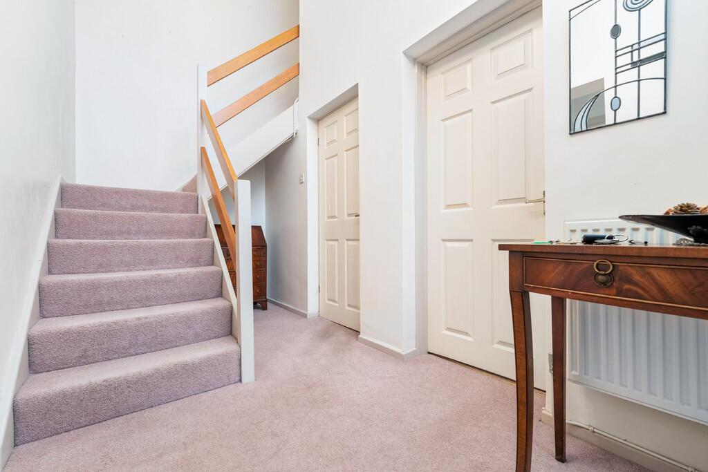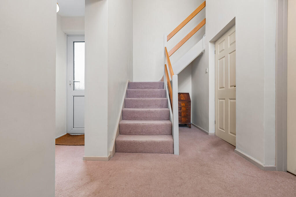 HALLWAY uPVC double glazed door into hallway. Feature vaulted ceiling with window to front, stairs to first floor, doors to lounge, kitchen, WC and integral door to garage. uPVC double glazed door to rear garden. Under stair storage space. Radiator.