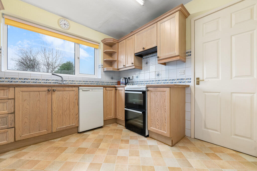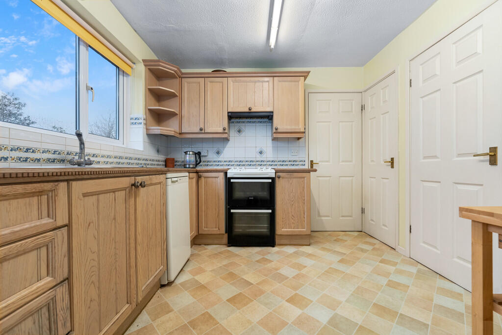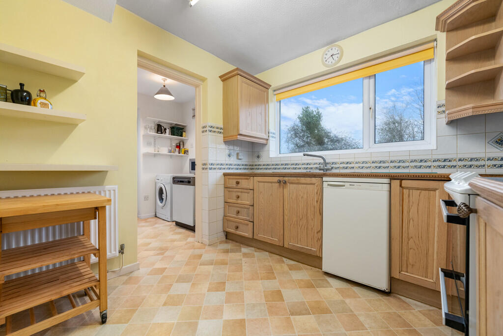 KITCHEN12' 3"(max) x 8' 10" (3.75m x 2.71m) Fitted with a range of base and eye level units incorporating one and a half bowl stainless steel sink and drainer with complementary work surfaces. Space for cooker and fridge. Fitted extractor fan. Tiled splash backs. Doors to pantry and storage cupboard providing space for fridge/freezer. Radiator. uPVC double glazed window to rear with views. Door to utility room.