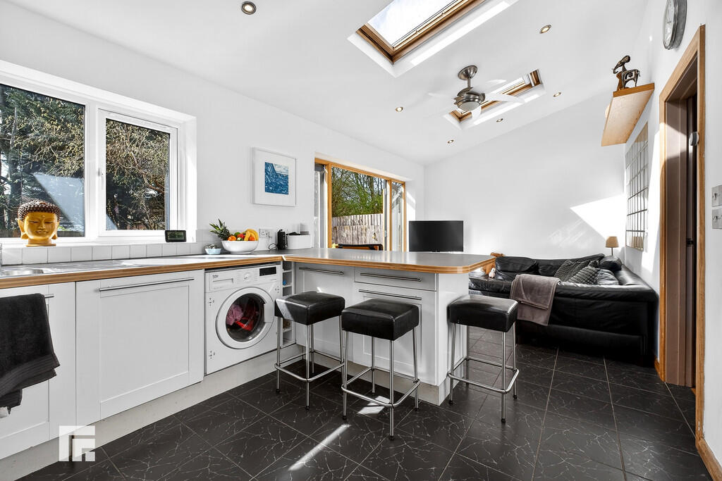 KITCHEN/BREAKFAST/FAMILYROOM21' 11" x 9' 10" (6.69m x 3.00m) Appointed along two sides with breakfast bar, High and low level cupboards beneath laminate worktops, stainless steel 1.5 bowl sink with chrome mixer tap and side drainer, integrated four ring gas hob, integrated oven and extractor hood, integrated microwave/grill, integrated dishwasher and integrated washing machine. Additional storage cupboards under breakfast bar. 'Worcester' moisture sensitive fan. Remote control ceiling fan. Tiled splashbacks and flooring. Spotlights. Three Velux windows. uPVC window to rear. Solid wood double French doors and side windows to rear.