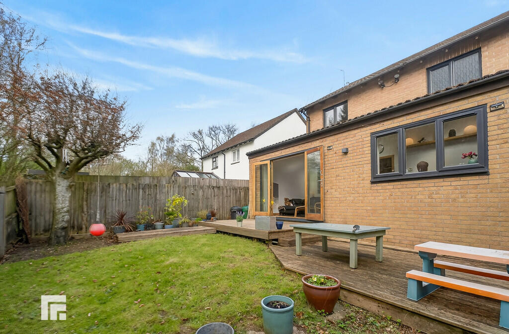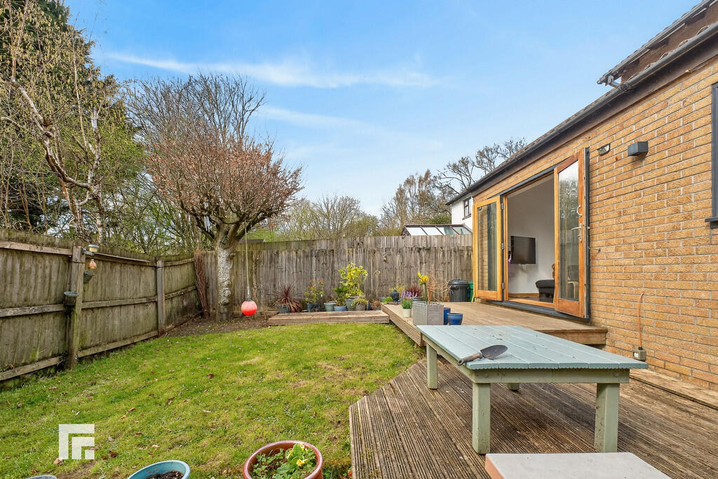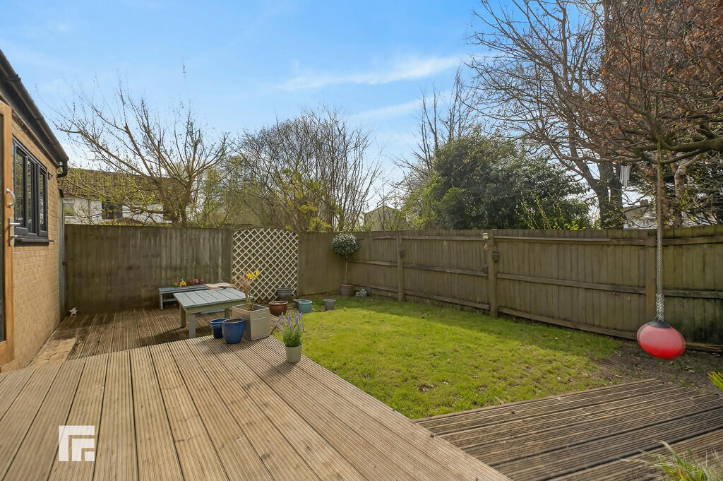 REARGARDEN Bordered by a timber fence, a south facing rear garden. Decked area leading to an area of lawn. Paved pathway to one side leading to timber gate for access. Additional timber gate to other side for access.