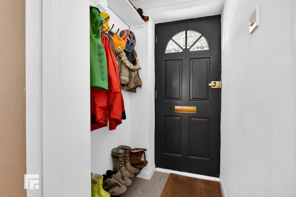ENTRANCEPORCH Entered via a solid wood door with obscured glass detail. Light. Coat hooks. Door thought to lounge.