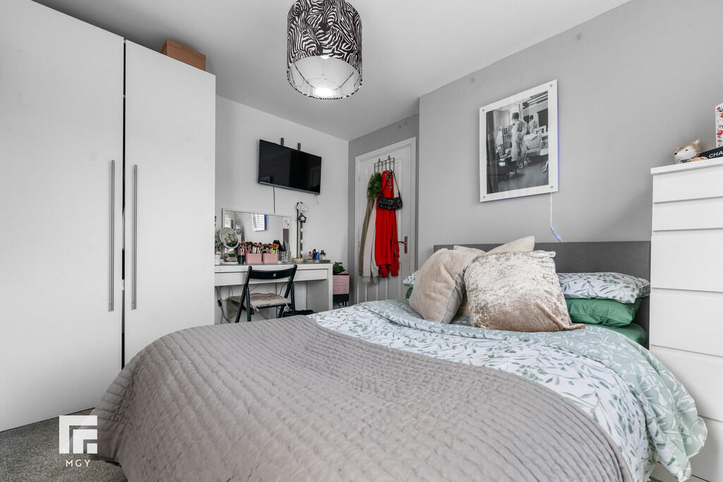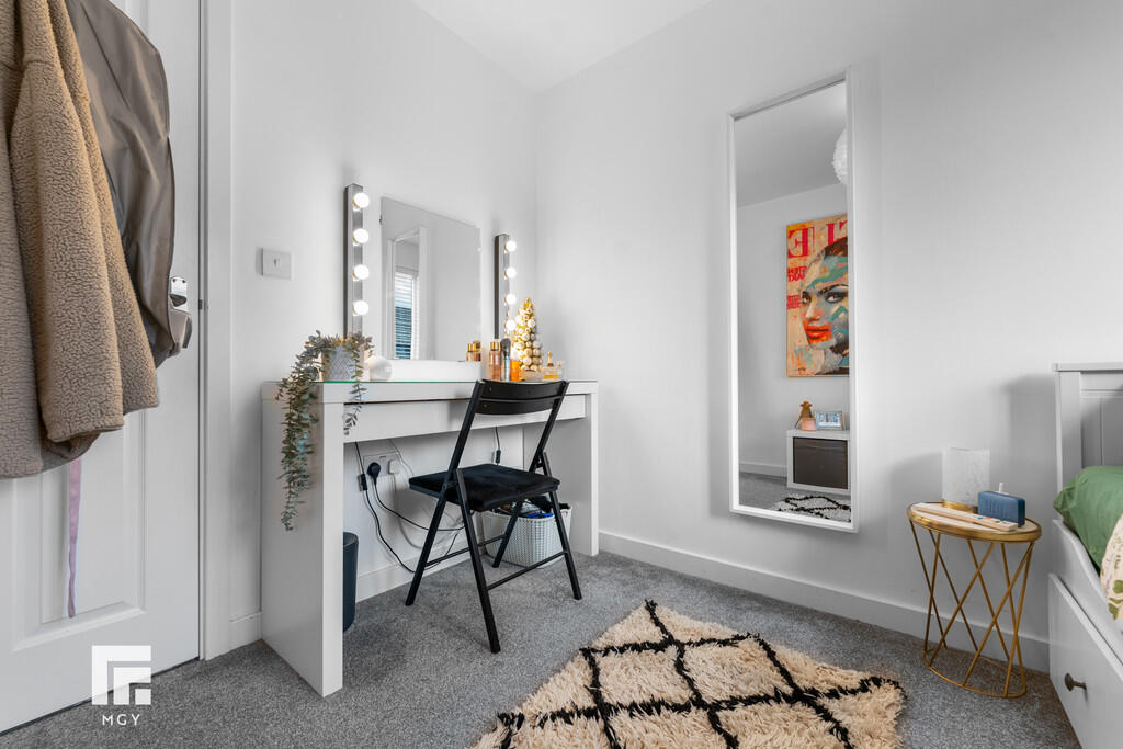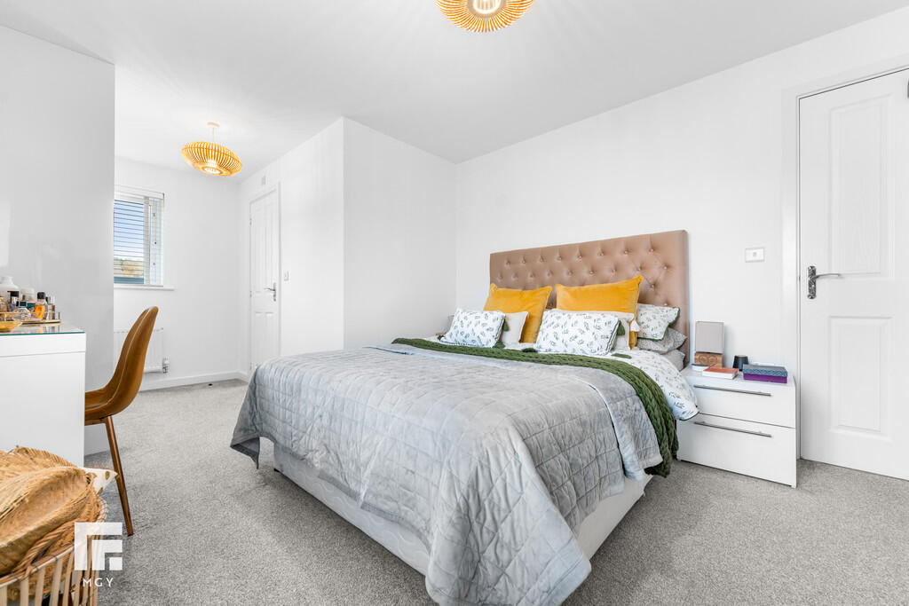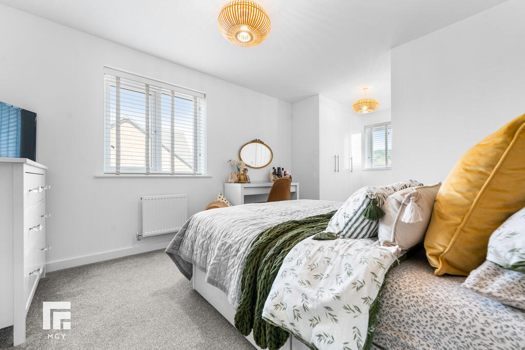 BEDROOMONE18' 6" x 10' 3" (5.65m x 3.14m) A spacious principal bedroom, modern built in wardrobes, radiator. uPVC window to front. Additional window to side overlooking the well maintained garden. Two radiators. Door to en-suite.