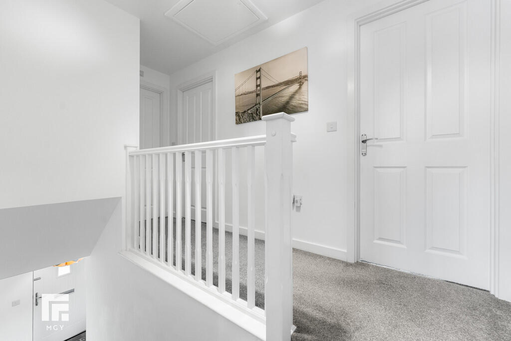 LANDING Painted banister with spindles, landing area with doors leading to all rooms. Storage cupboard. Radiator. Loft access.