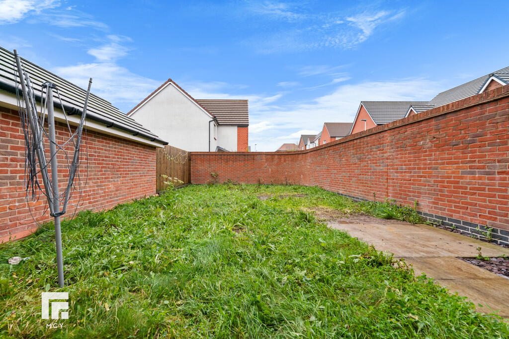 REARGARDEN Small area of paved patio and lawn. Majority enclosed by timber fencing. Timber gate giving access to side.