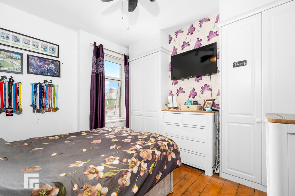 BEDROOMONE11' 6" x 10' 2" (3.52m x 3.11m) Overlooking the rear garden, a good sized primary bedroom. Two fitted double wardrobes to one side. Wood floor boarding. Radiator.