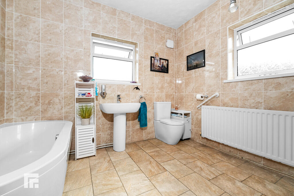 FAMILYBATHANDSHOWERROOM10' 9" x 9' 6" (max)(3.29m x 2.92m) A sizeable family bath & shower room with modern white suite comprising low level wc, wash hand basin, bath with central taps, tiled shower cubicle with chrome shower. Large airing cupboard housing the 'Worcester' combi gas central heating boiler. Full wall tiling. Tiled flooring. Obscured glass windows to side and rear. Extractor fan. Radiator.