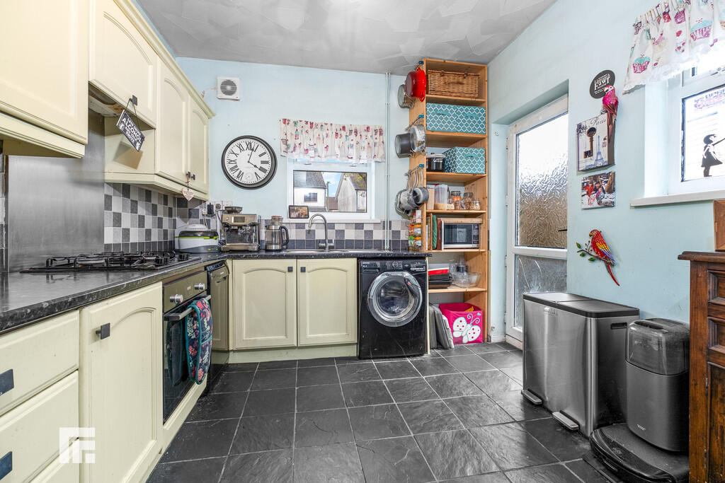 KITCHEN/BREAKFASTROOM10' 9" x 9' 8" (3.30m x 2.95m) Well appointed along two sides in panelled fronts beneath round nosed worktop surfaces. Inset 1.5 bowl stainless steel sink with side drainer. Inset four ring gas hob with concealed cooker hood above and oven below. Space for fridge freezer. Plumbing for washing machine. Plumbing for dishwasher. Tiled splash back. Two windows to rear and side. Door to rear garden. Tiled flooring. Space for breakfast table. Radiator.