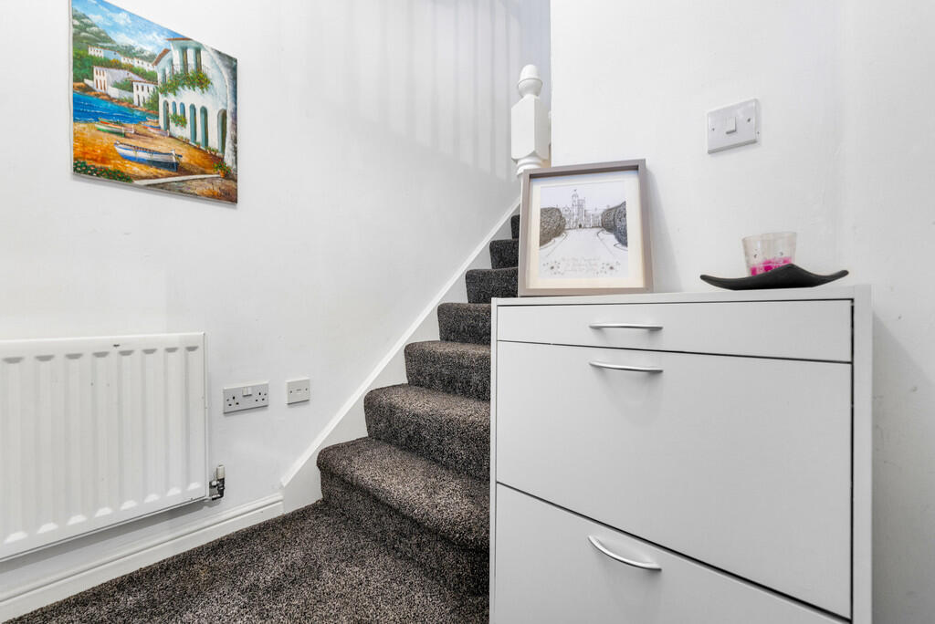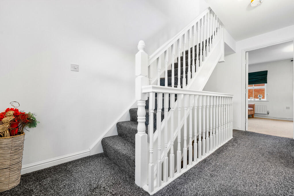 LANDING Doors to lounge, bathroom and bedroom three. uPVC double glazed window to front with pleasant views. Radiator. Stairs to second floor.