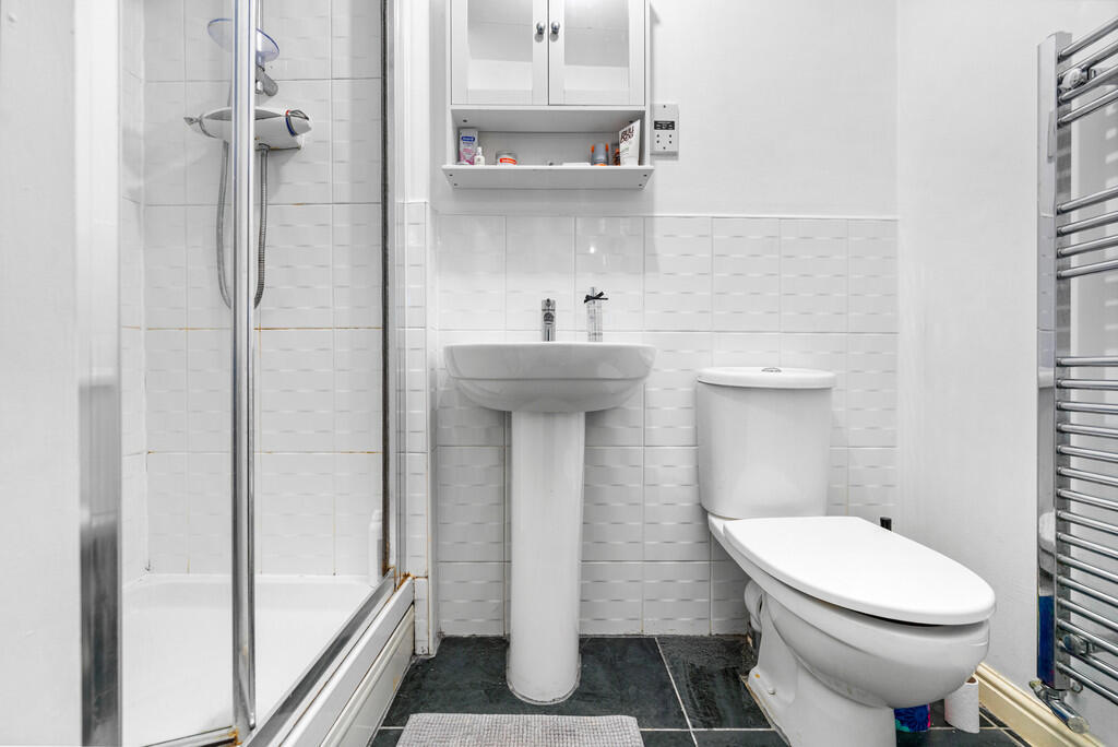 ENSUITE6' 11" x 3' 11" (2.13m x 1.21m) Suite comprising low level WC, pedestal wash hand basin and fitted shower cubicle. Tiled flooring and splash backs. Extractor fan. Shaver point. Ladder radiator.