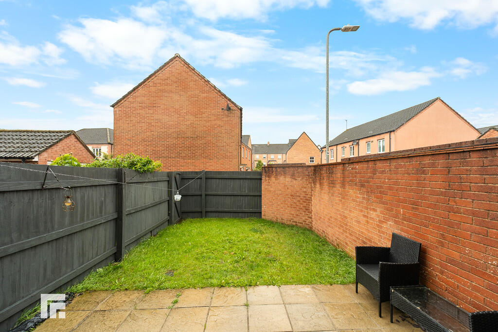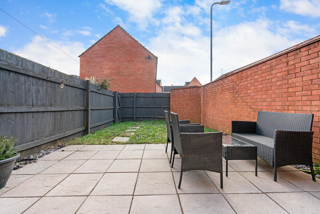 REARGARDEN A Westerly facing rear garden, mainly laid to lawn with paved patio area. Outside tap. Boundary wall and fence, with gate leading to parking space and single garage.