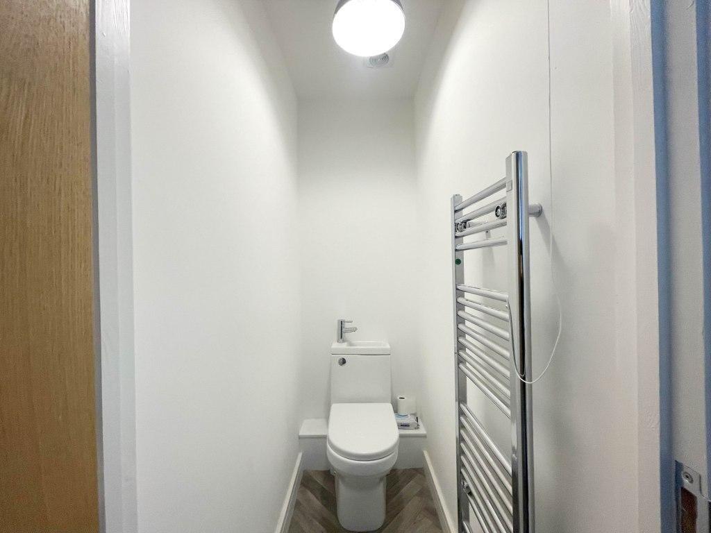 CLOAKROOM low level WC and wash hand basin. Radiator.