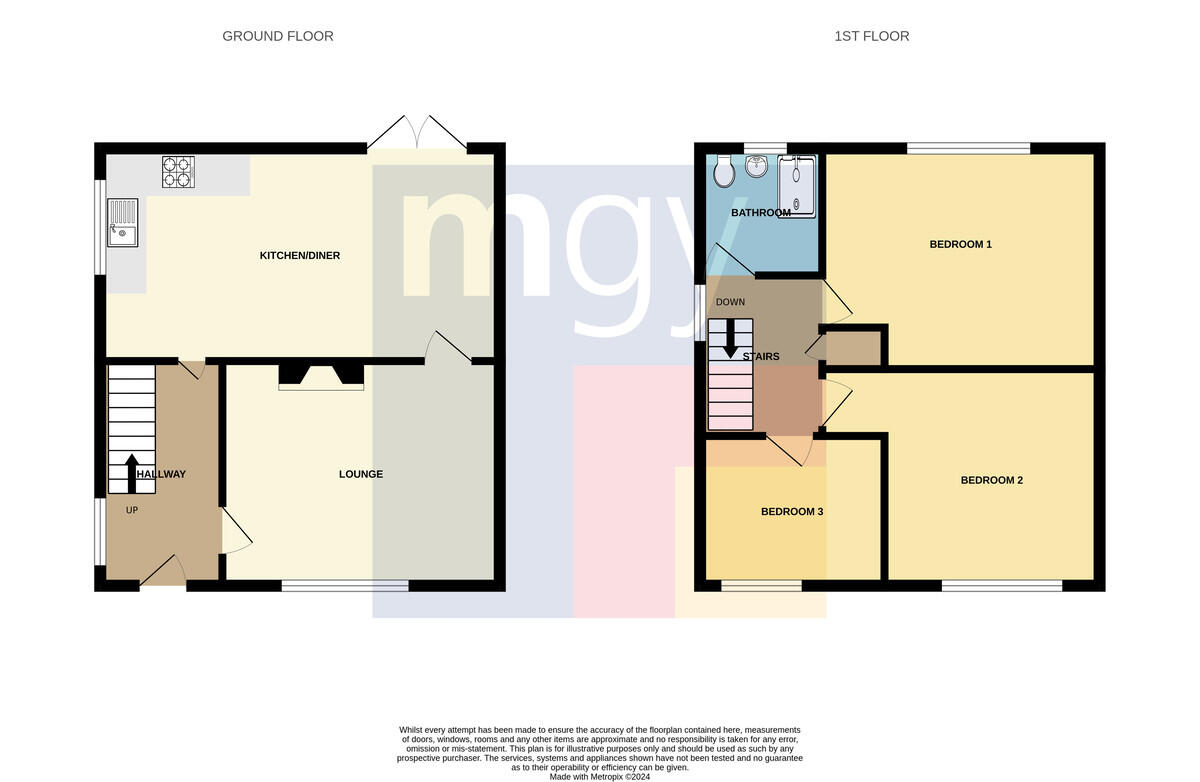 KITCHEN/DININGROOM19' 10" x 10' 5" (6.07m x 3.19m) Upvc double glazed patio doors to rear garden. Upvc double glazed window to side. Spot lights to ceiling. Ceramic tiled floor. Range of fitted kitchen base and wall units with worksurface and tiled splash backs incorporating stainless steel sink unit with mixer tap. Built in electric oven and inset gas hob with extractor fan over. Room for American fridge freezer. Plumbing for washing machine. Cupboard housing Worcester gas central heating boiler (3 yrs old) Radiator.