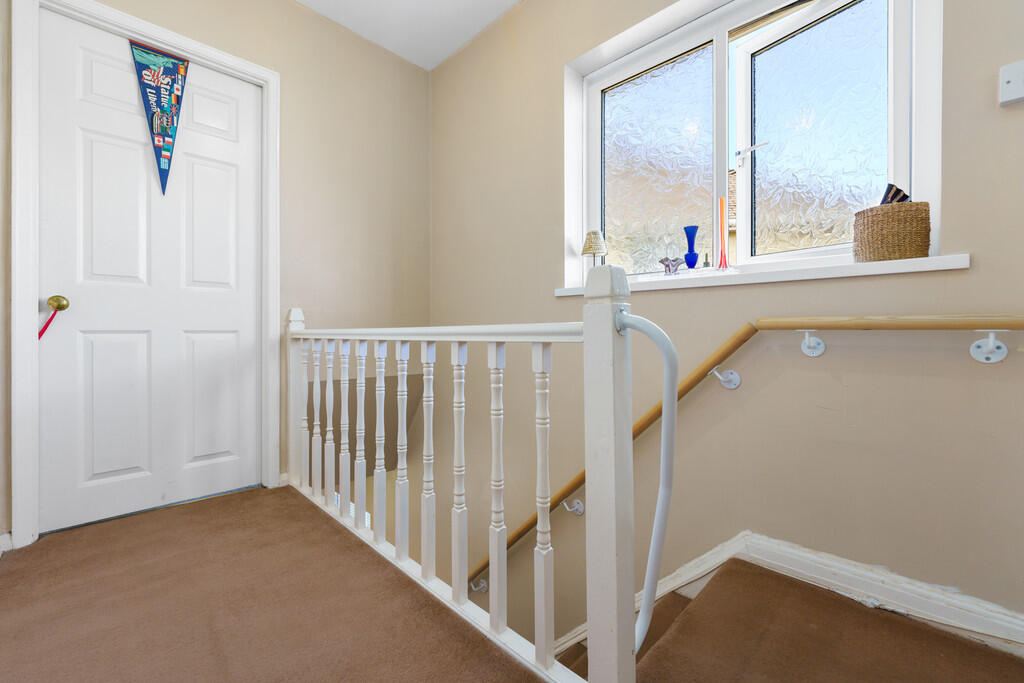 FIRSTFLOOR LANDING AREA - Upvc obscure double glazed window to side. Access to loft space. Storage cupboard.