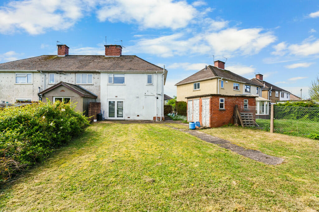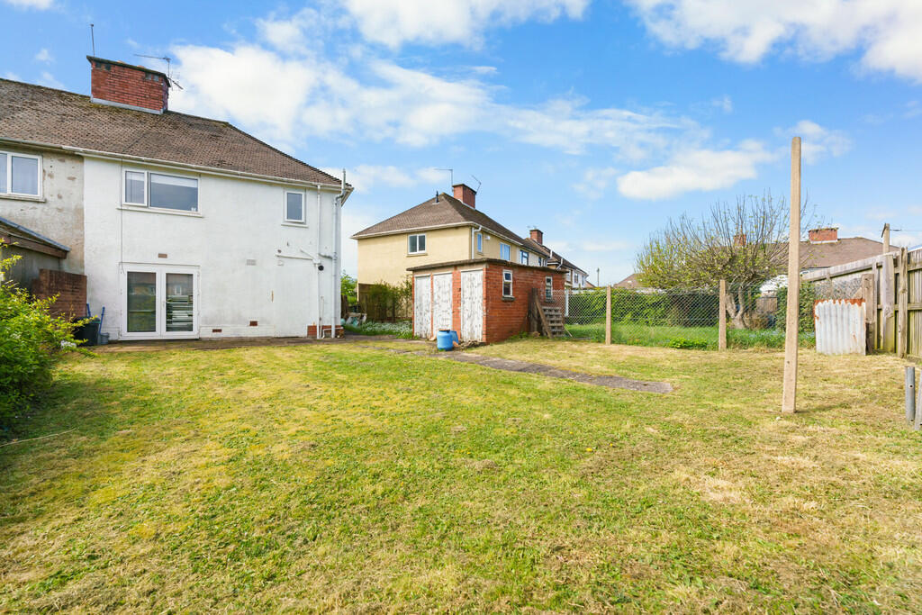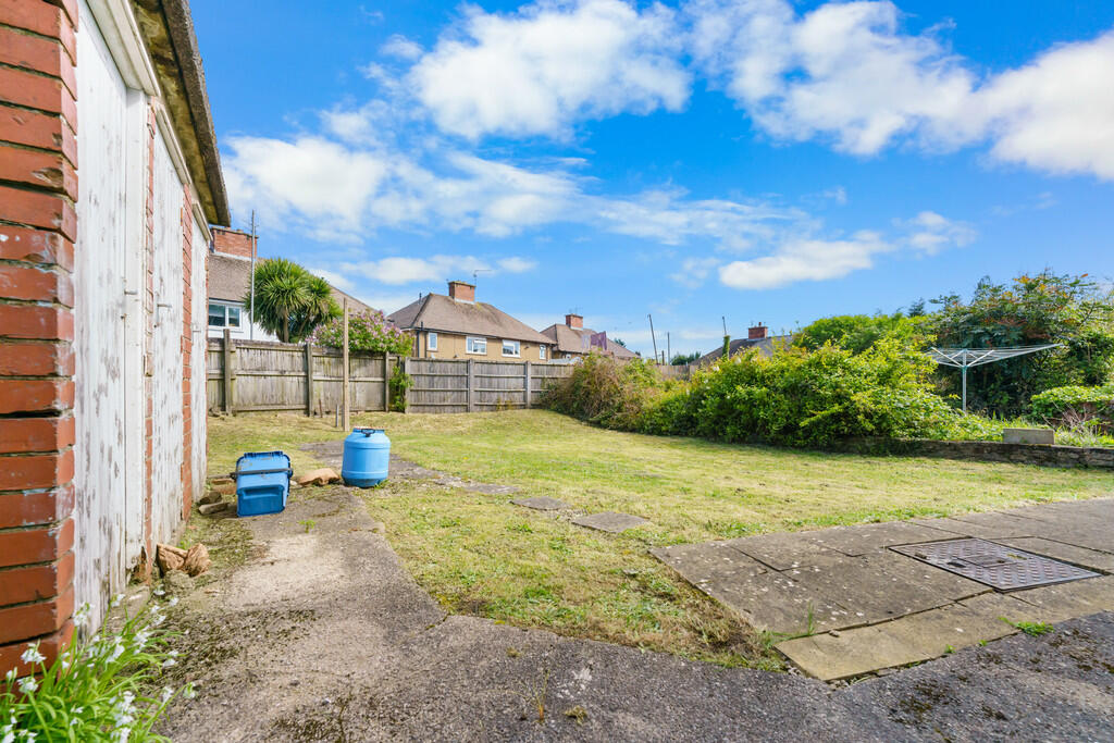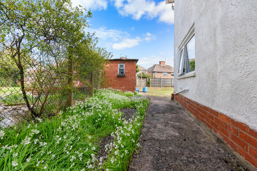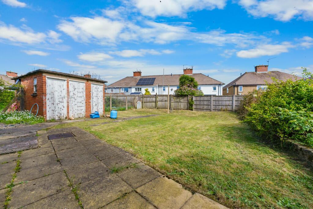 OUTSIDE REAR GARDEN - Generous sized plot laid predominantly to lawn with paved patio area. Storage sheds. Pathway with wooden gate to side leading to front garden.