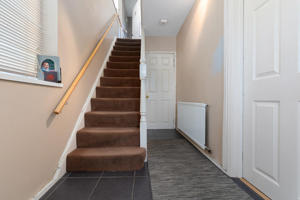 ENTRANCEHALL Entered via upvc double glazed door with obscure leaded panels. Upvc double glazed window to side. Ceramic tiled flooring. Stairs rising to first floor with under stairs storage cupboard housing gas and electric meters. Radiator.