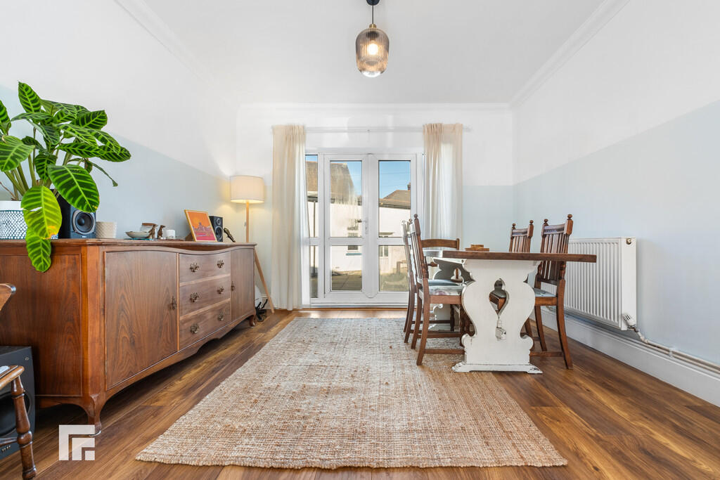 DININGROOM11' 11" x 11' 9" (3.64m x 3.60m) Continuation of the laminate flooring. Pendant light fitting. Radiator. Power points. Double glazed door leading to rear garden. Door leading back into hallway.