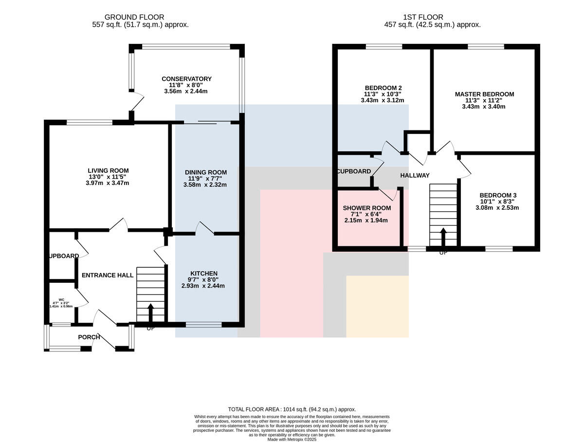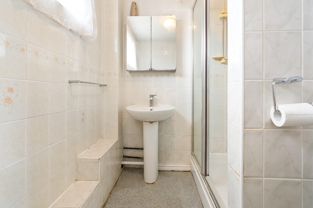 SHOWERROOM6' 10" x 6' 2" (2.1m x 1.9m) Vinyl flooring. Tiled walls. Radiator. Obscure double glazed uPVC window. Pendant light fitting. Extractor. Walk in shower cubicle with mains powered shower over.