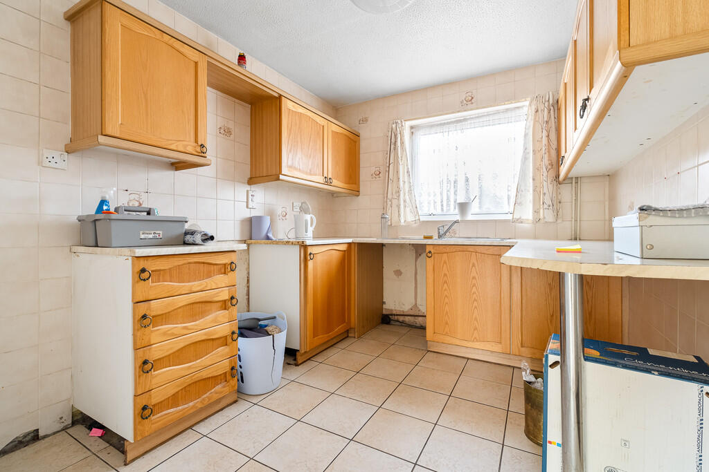 KITCHEN9' 6" x 7' 10" (2.9m x 2.4m) Tiled walls and flooring. Pendant light fitting. Power points. Range of wall, base and drawer units with worktops over. Space for appliances such as fridge/freezer, washing machine, and oven. Double glazed uPVC window to rear aspect. Radiator.