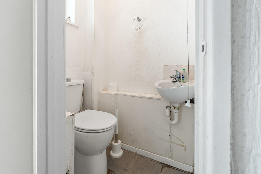 W.C4' 7" x 3' 3" (1.4m x 1.0m) Double glazed uPVC obscure window to rear aspect. Pendant light fitting. Wall mounted wash hand basin with mixer tap over. WC.