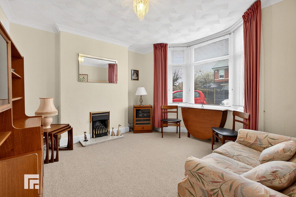 LOUNGE12' 7" x 12' 3" (3.85m x 3.74m) Upvc double glaized bay window to front. Coved ceiling. Feature gas fire. Radiators.