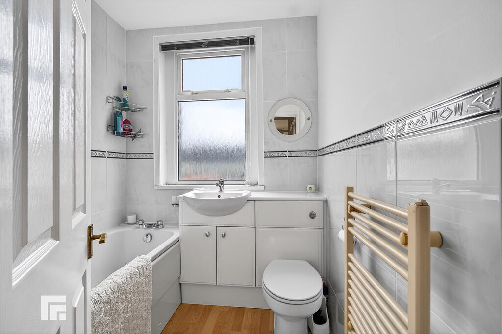 BATHROOM Upvc double glazed window to rear. Part tiled walls. Fitted bathroom furniture with vanity unit with inset wash hand basin, low level wc and panelled bath with shower over and shower screen. Radiator.