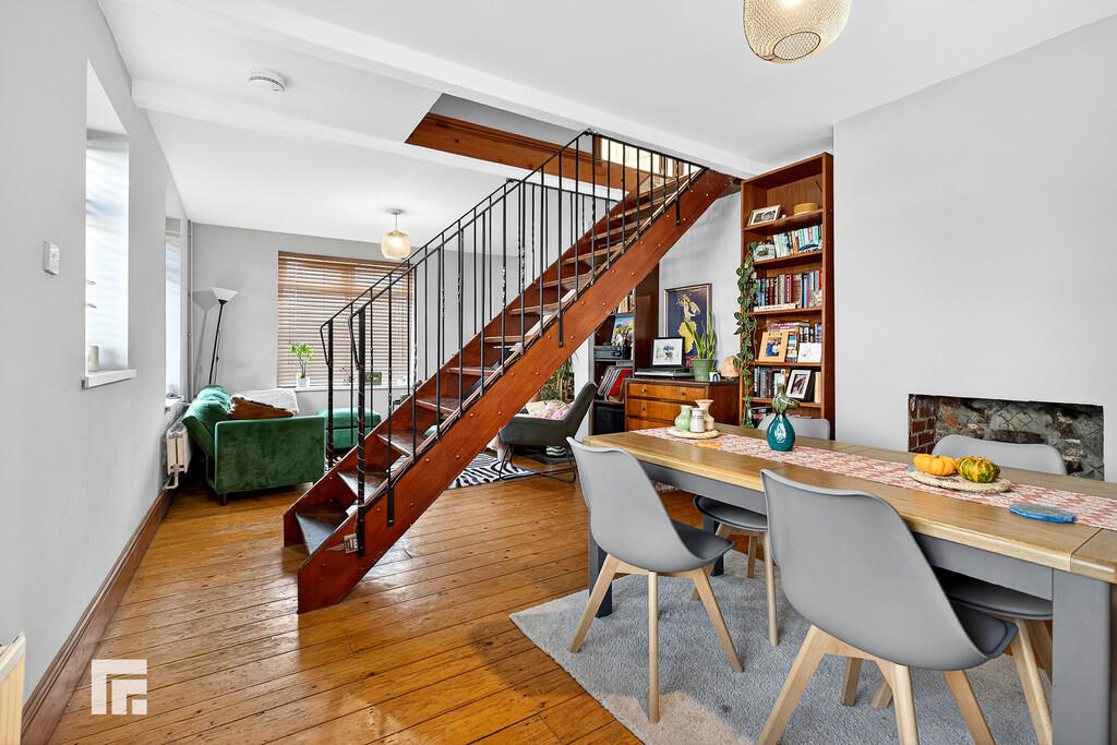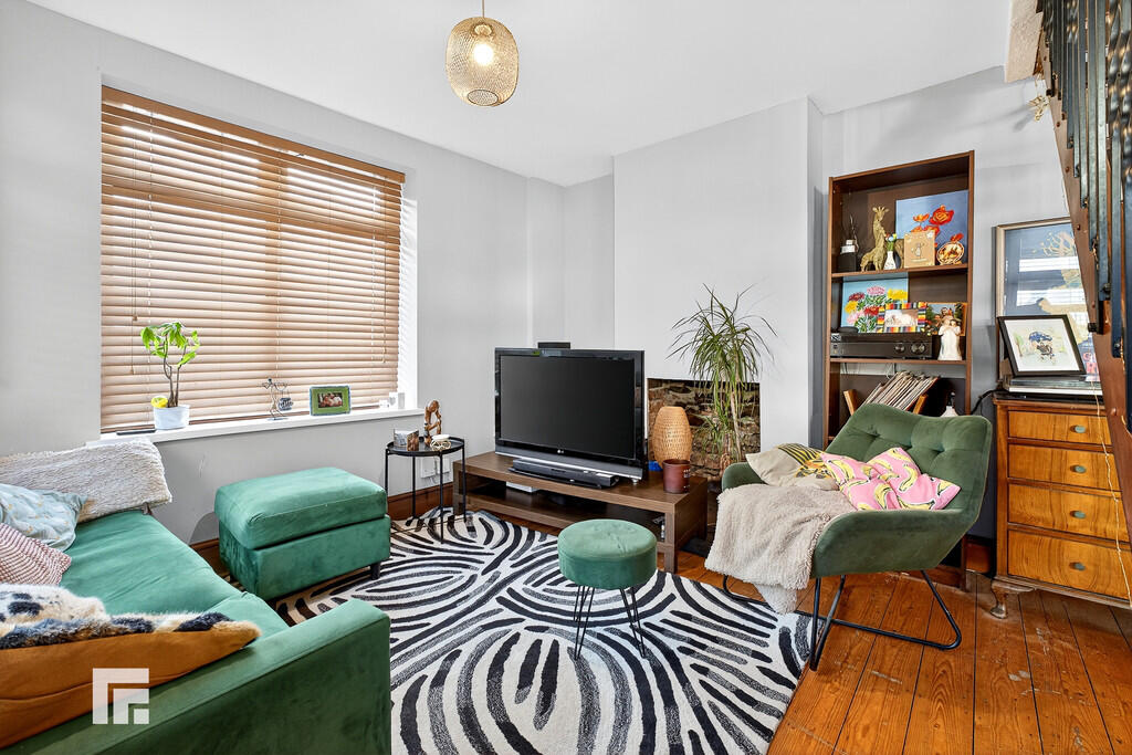 LOUNGE12' 1" x 22' 9" (3.69m x 6.95m) Double glazed uPVC windows to front and side aspects. Exposed floorboards. Pendant light fittings. Radiator. Alcoves with fixed shelving. Stairs leading to first floor.