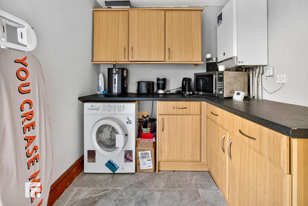 UTILITYROOM7' 3" x 9' 3" (2.22m x 2.84m) uPVC door leading to private rear garden. Counters cross two walls. Space and plumbing for washing machine. Wall mounted boiler. Tiled flooring. Radiator.