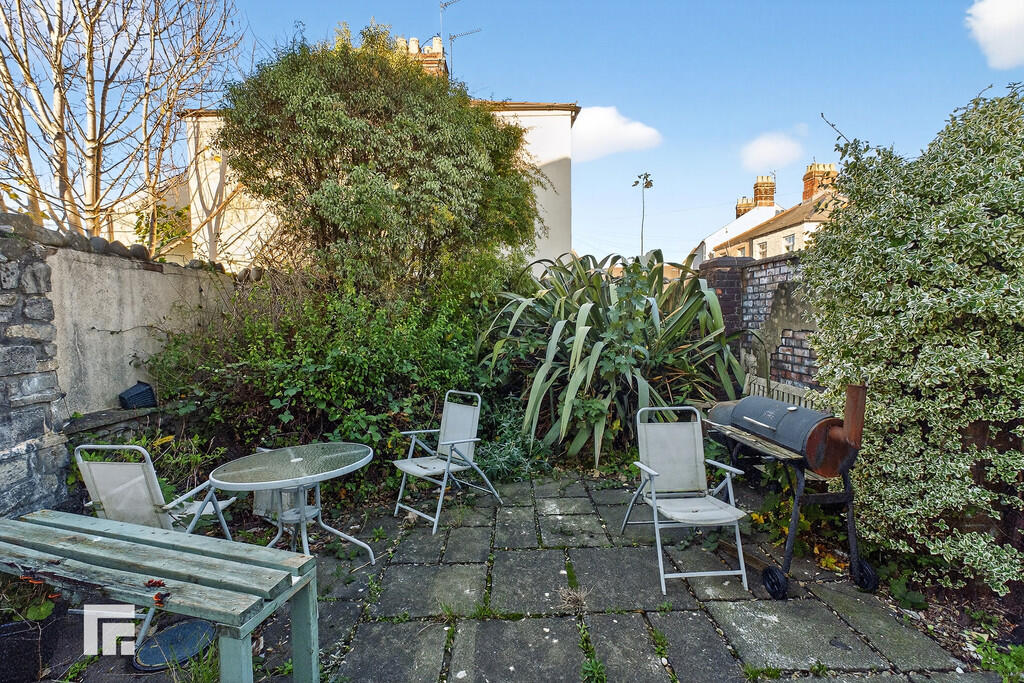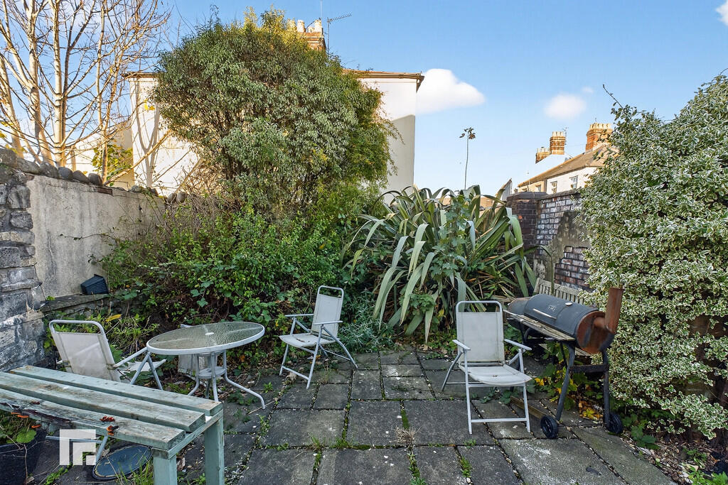 Rear - Laid to patio. Wall border. Mature plants and shrubs. Outside tap.