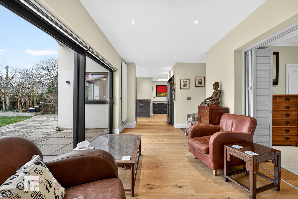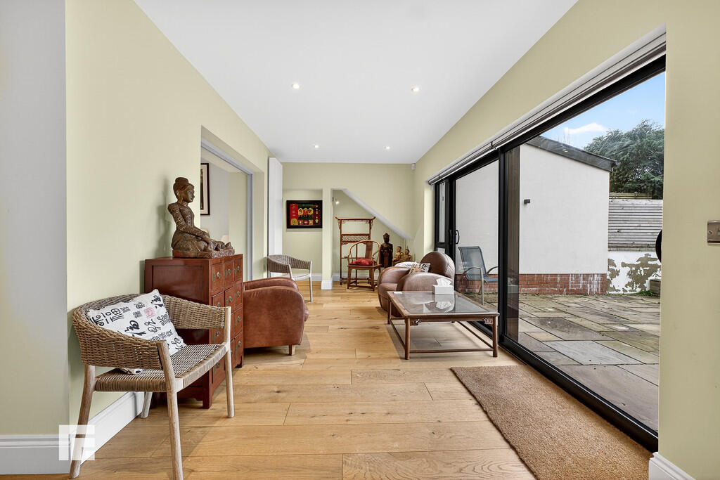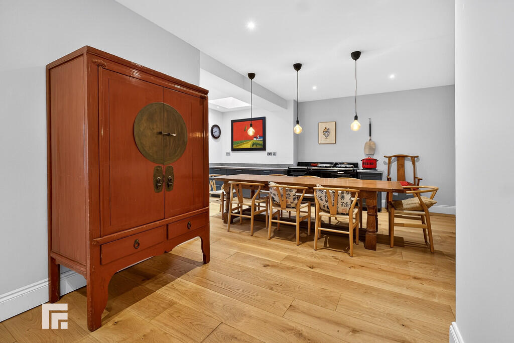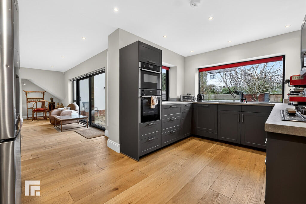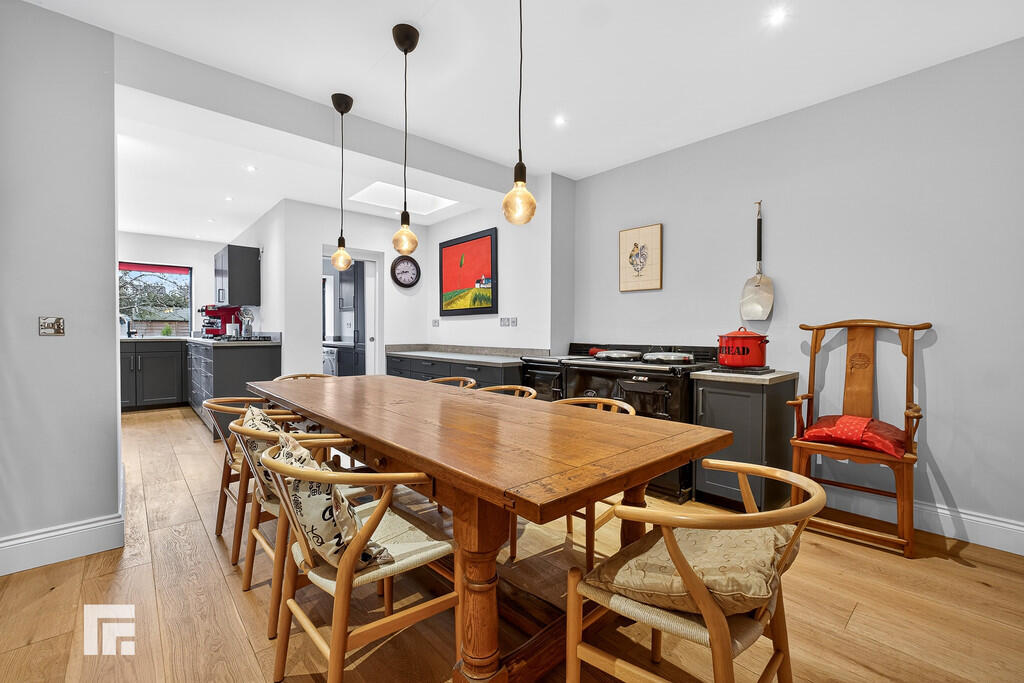 LIVING/KITCHEN/DINING38' 11" x 30' 10" (11.87m x 9.42m) Spectacular open plan space. Wood flooring. Spotlights and pendant lighting. Modern fitted kitchen with a range of wall, base and drawer units with worktops over incorporating black 1.5 sink and drainer with mixer tap over and five ring gas hob. Integrated dishwasher, oven and grill. Space for American fridge/freezer. Two double glazed uPVC windows to rear aspect and additional Velux window. Double glazed uPVC bi-folding doors leading to rear garden. Fitted storage. Doors to utility room and pantry. Radiators. Cellar hatch providing access to cellar.