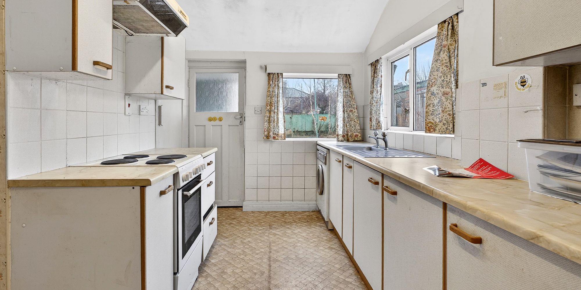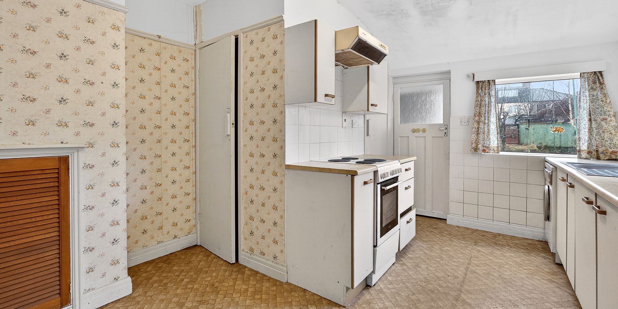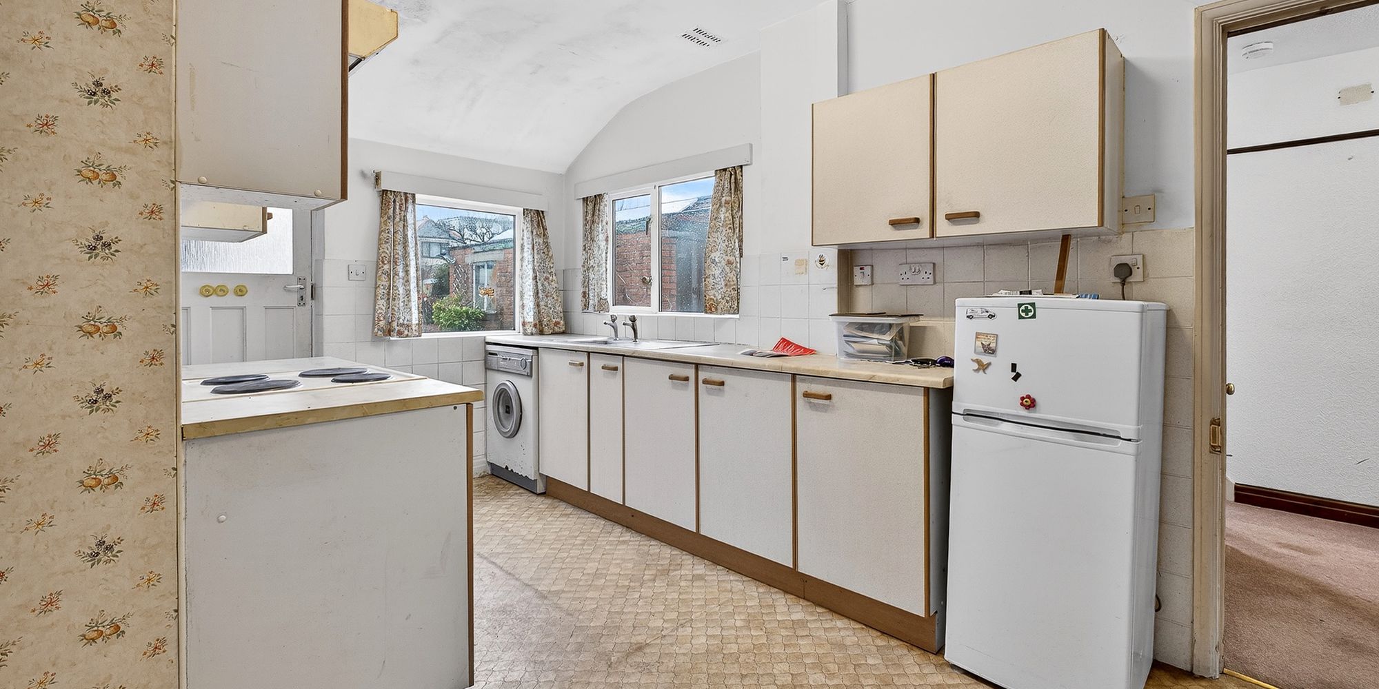 KITCHEN Obscured glazed wooden door to rear porch, Double glazed window's to rear and side. Pantry and storage cupboard. Base and wall units with work surfaces incorporating stainless steel sink unit with hot and cold taps. Space for electric cooker and fridge / freezer. Plumbing and space for washing machine.