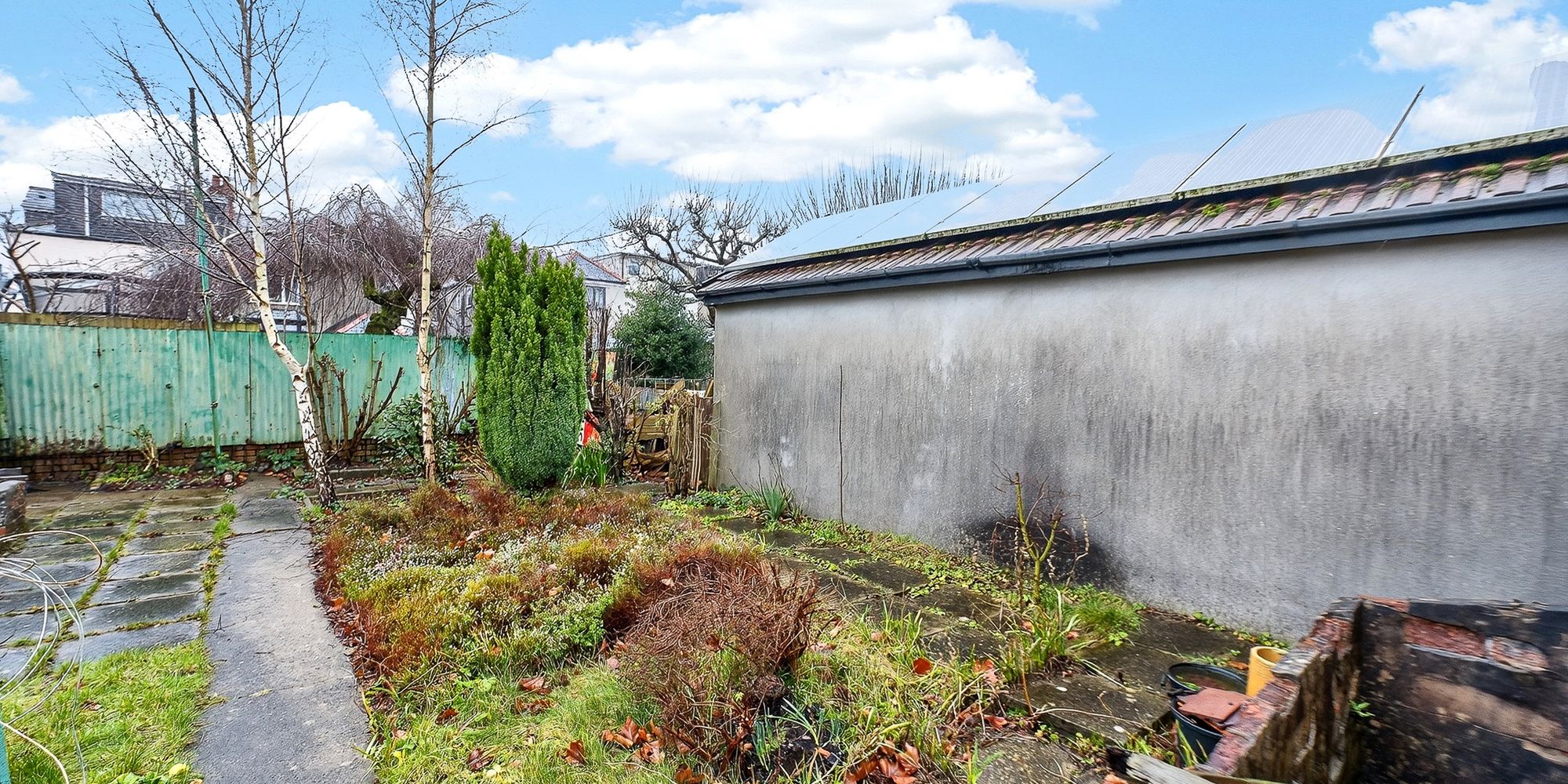 OUTSIDE Front - Paved front garden and driveway. Side gate to rear garden. Rear- A generous size garden mostly laid to lawn, with raised planters, various trees and shrubs. Shed. Outside coal shed. Garage with up and over door.
